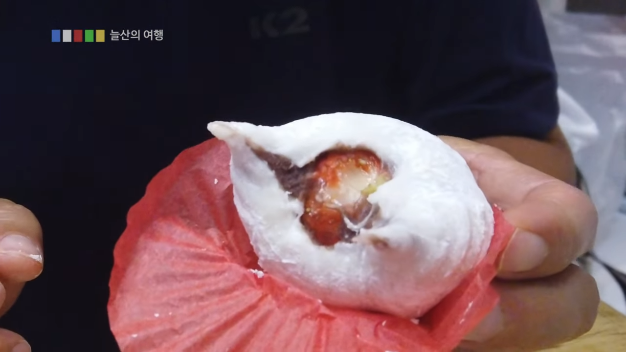 여수 여행의 마무리로 선택한 디저트는 바로 딸기 찰떡(딸기모찌)입니다. 신선한 생딸기와 부드러운 팥소, 그리고 쫄깃한 찹쌀떡의 조화는 남녀노소 누구나 좋아할 맛이죠. 직접 맛보는 장면을 통해 그 달콤함을 생생하게 담아보았습니다.
