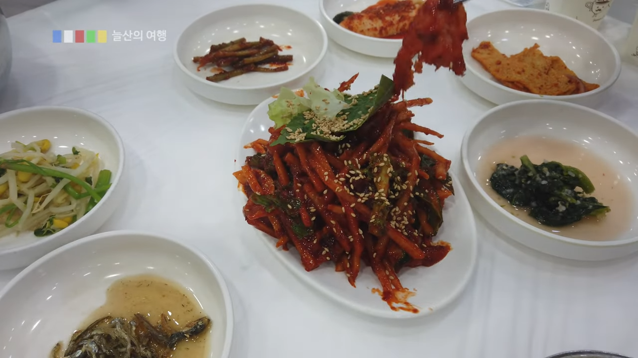 메인 요리가 나오기 전 깔리는 밑반찬부터가 예술입니다. 셀프 코너에서 리필이 가능한 반찬들은 하나하나 전라도의 깊은 손맛이 느껴졌습니다. 특히 하얀 양념 갓김치는 이 집만의 별미로, 톡 쏘는 맛과 깔끔함이 입맛을 돋우기에 충분했습니다.